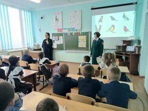 Алар укучылар өчен экологик лекция үткәрделәр, анда кыш көне кошларга ничек ярдәм итә алуыбыз турында сөйләделәр.